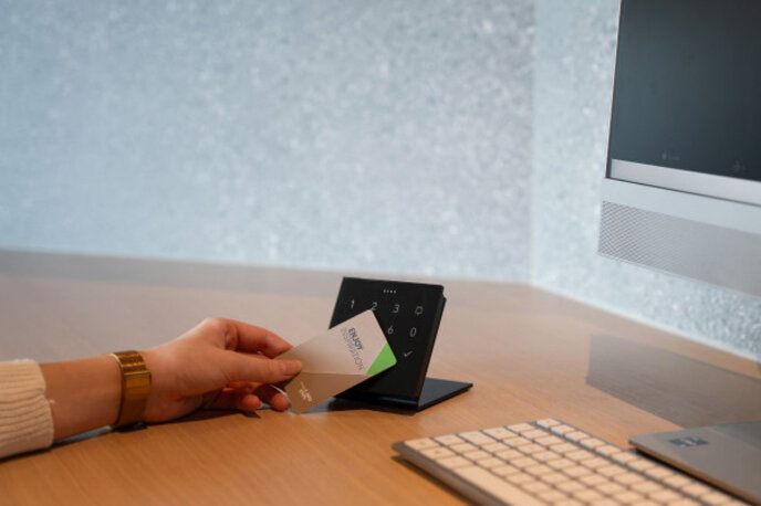 Die hochwertige Stand Base ist perfekt dafür geeignet, um den NFC Code Touch Air, Touch Pure Air oder Touch Pure Flex Air auf dem Schreibtisch im Büro, an der Hotelrezeption oder an verschiedenen anderen Orten zu bedienen.