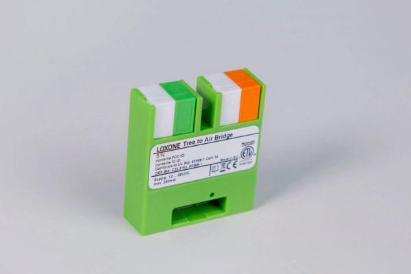 Die Loxone Tree to Air Bridge ermöglicht das Einbinden zahlreicher Geräte, die mit der Loxone Air Funktechnologie ausgestattet sind, oder als Erweiterung der Funkabdeckung von Loxone Air. Die Anbindung erfolgt über die Tree Schnittstelle.